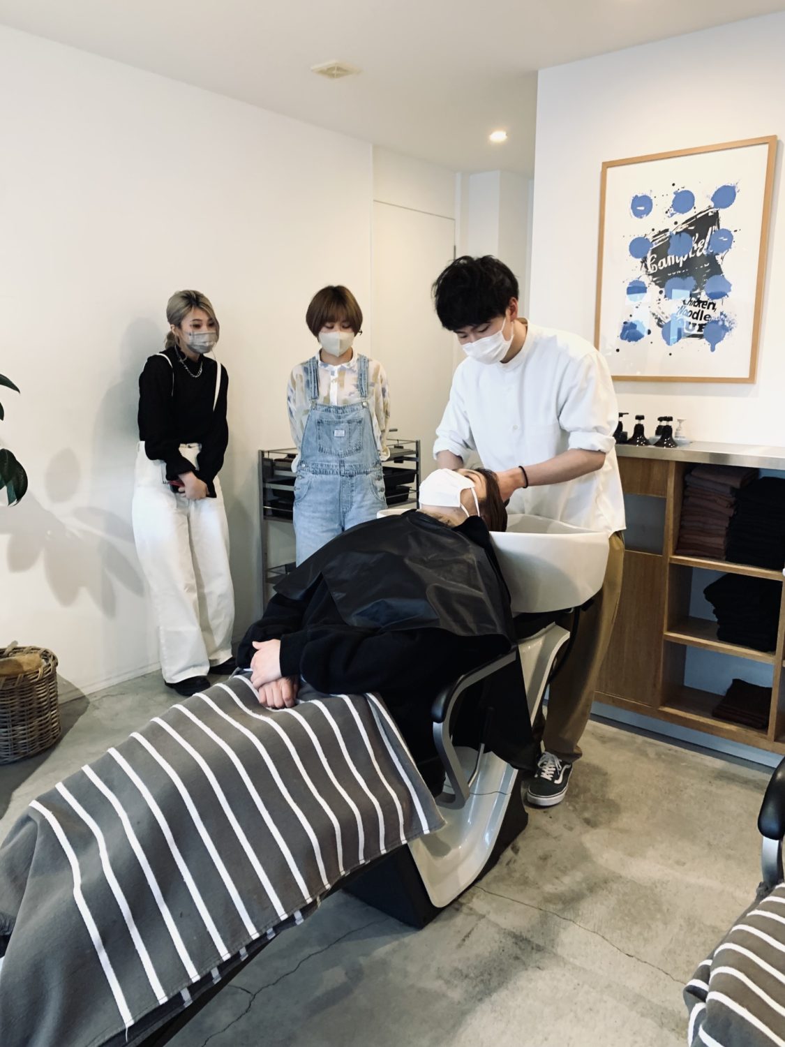 今回は、青山にある、スタイリストだけで総勢17名もいる、大きな店舗の店長をされている龍さんとアシスタント3名の計4名で来てくれました。